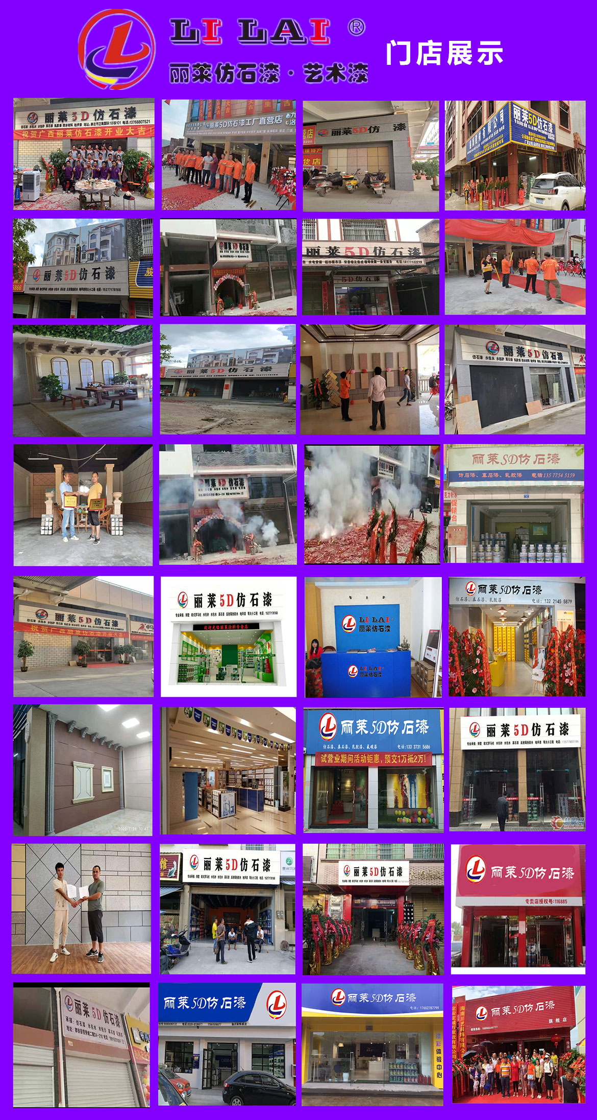 公司旗下核心品牌“麗萊”“杰涂士“,主要產品“仿石漆”、“藝術漆”、“真石漆”、“水生漆”及配套輔材全系產品均為綠色環保節能產品。憑借完善的研發、制造和服務體系,能為客戶定制和提供近千種仿石效果和藝術涂裝效果方案,為了能夠滿足不同層次、不同需求的家裝及工裝需求,公司打造了1000多平方米的大型展示館及綜合體辦公大樓,以供客戶的各種風格需求。截至2018年累計工程案例數千個,公司旗下麗萊仿石漆品牌已逐步替代瓷磚和干掛石材,成為廣大外墻涂裝用戶的信賴產品。